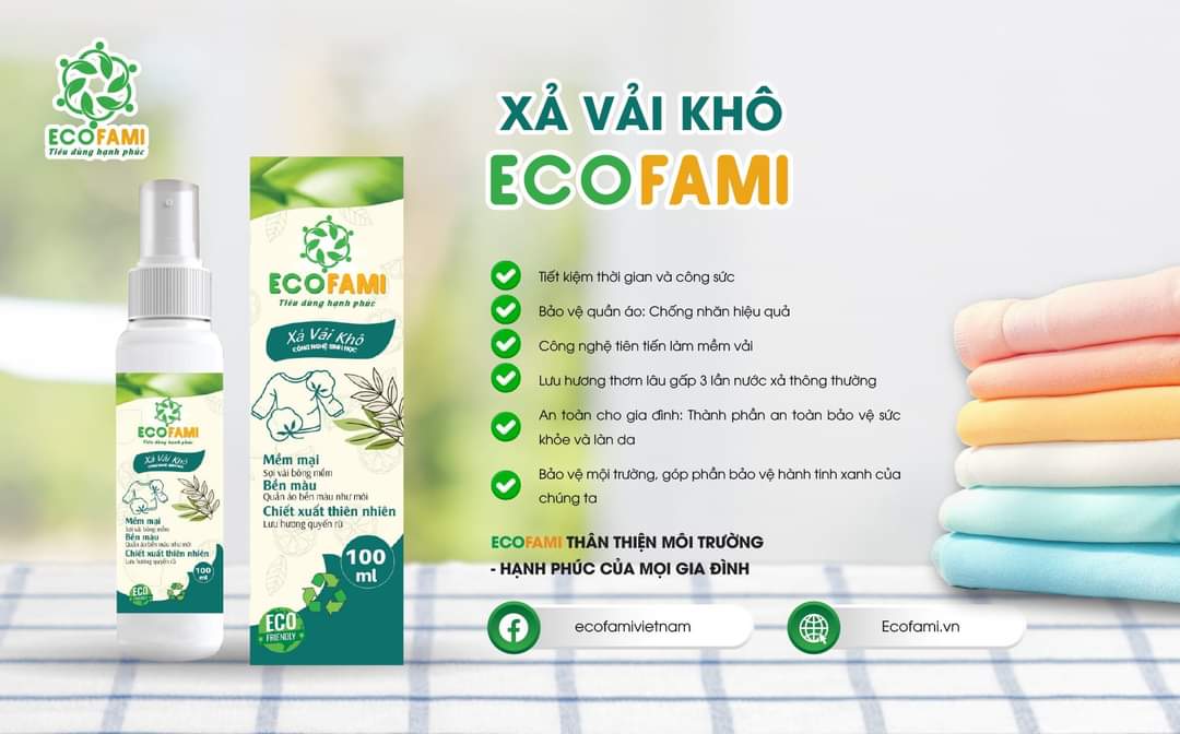 Xả vải khô EcoFami là sản phẩm mới nhất trên công nghệ đột phá, thành phần lành tính tính năng vượt trội, SIÊU TIẾT KIỆM, mang đến TRẢI NGHIỆM giặt giũ TỐI ƯU cho mọi gia đình bạn.